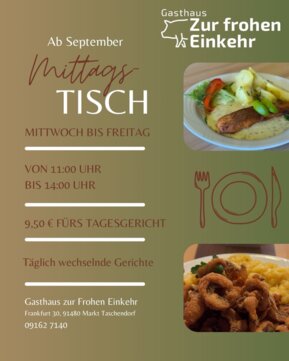 Um das Video der Firma Gasthaus zur frohen Einkehr mit Sitz in Markt Taschendorf abzuspielen, benötigen Sie ein Flash plugin in der Version 9.x oder höher.